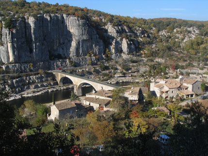 - Le village de Labeaume au bord de la Beaume, un superbe village accroché à sa falaise qui domine la rivière (à 15 km).